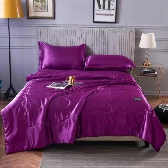 Новое высококачественное шелковое летнее одеяло Мягкое и удобное Высококлассное кондиционер Однотонное летнее тонкое одеяло 150x200cm фиолетовый
