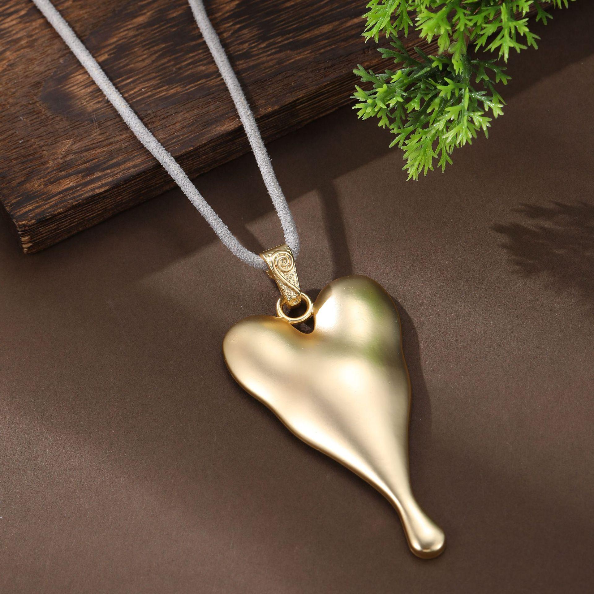 Новое глупое золото любовь бархат длинная подвеска женское ретро простое сердцевидное универсальное длинное ожерелье