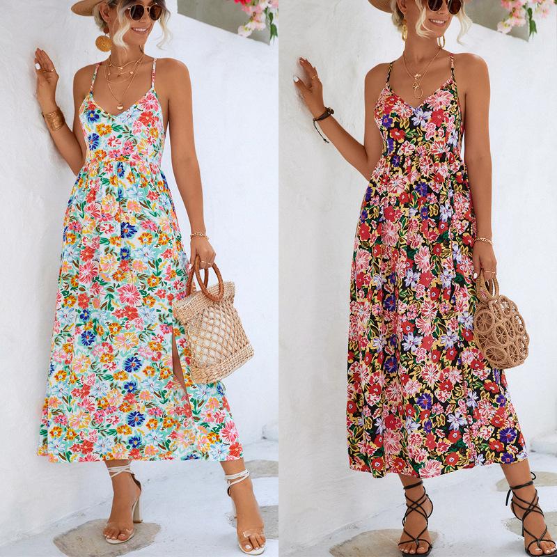 Новое женское весенне-летнее платье с открытой спиной и цветочным принтом на подтяжках
