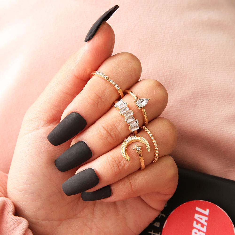 Новое женское кольцо, богемное индивидуальное модное индивидуальное кольцо с луной, набор из 5 предметов для женщин