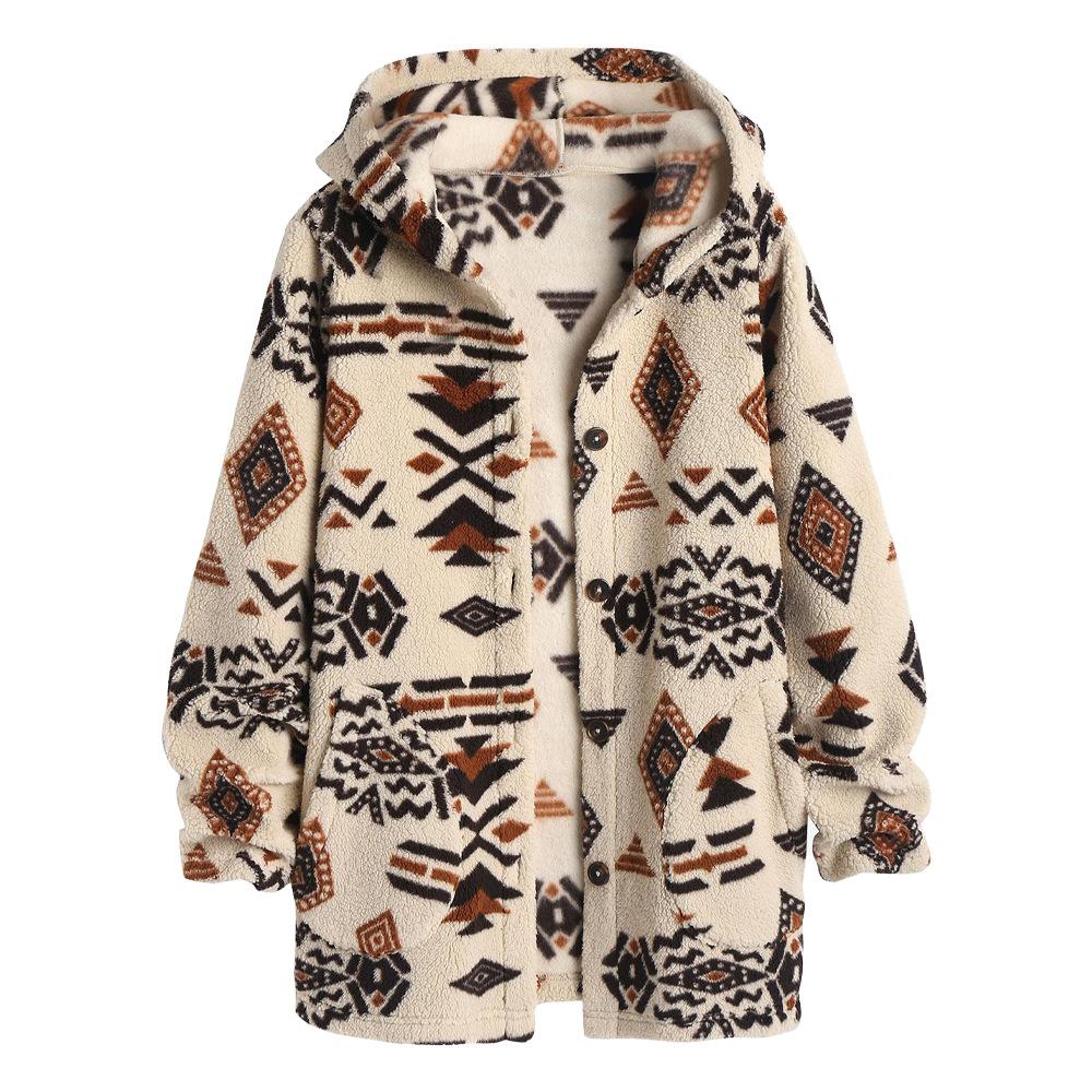 Новое женское пальто, куртка в европейско-американском стиле, однобортное, с этническим принтом, флис средней длины, для осени и зимы XL хаки