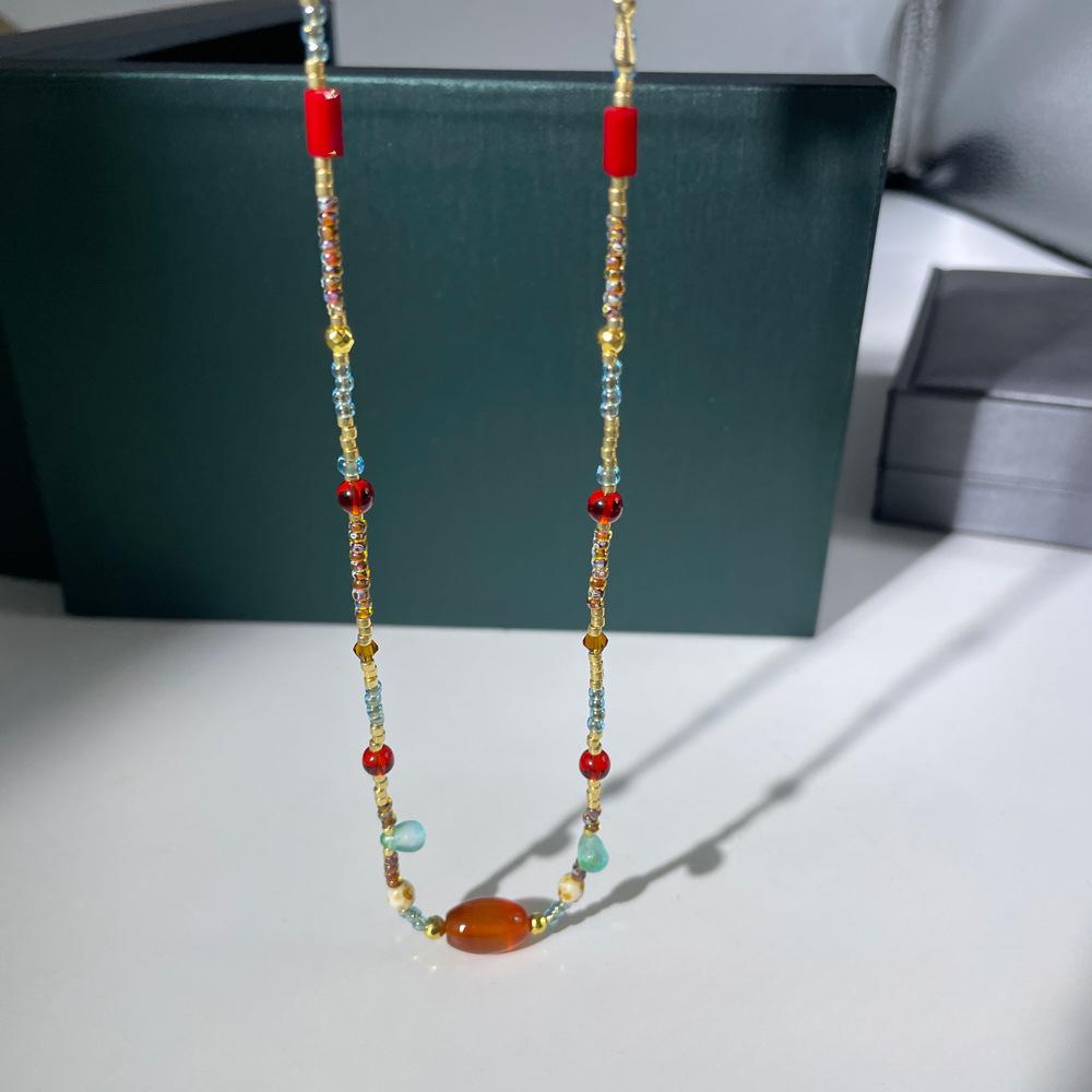 Новое китайское национальное нишевое ожерелье из бисера, ретро-цепочка из натурального камня с агатом на ключице, браслет ins, женский браслет