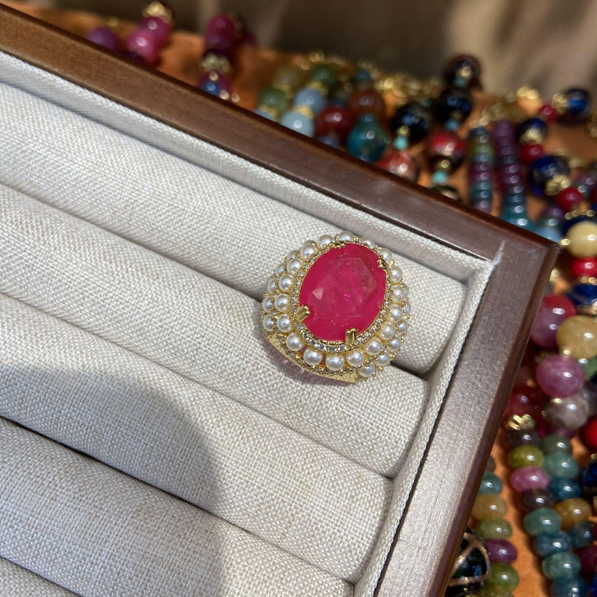 Новое кольцо с яйцевидным камнем-цирконом и жемчугом, медное позолоченное кольцо, сохраняющее цвет, модное открытое кольцо