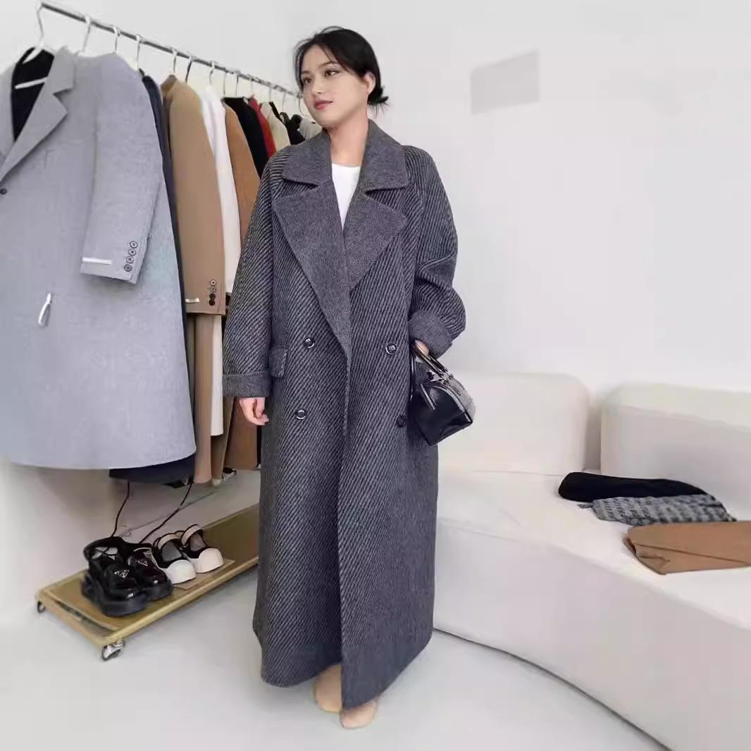 Новое корейское шерстяное пальто из твила с двухсторонним плетением, длинное женское пальто для осени и зимы M