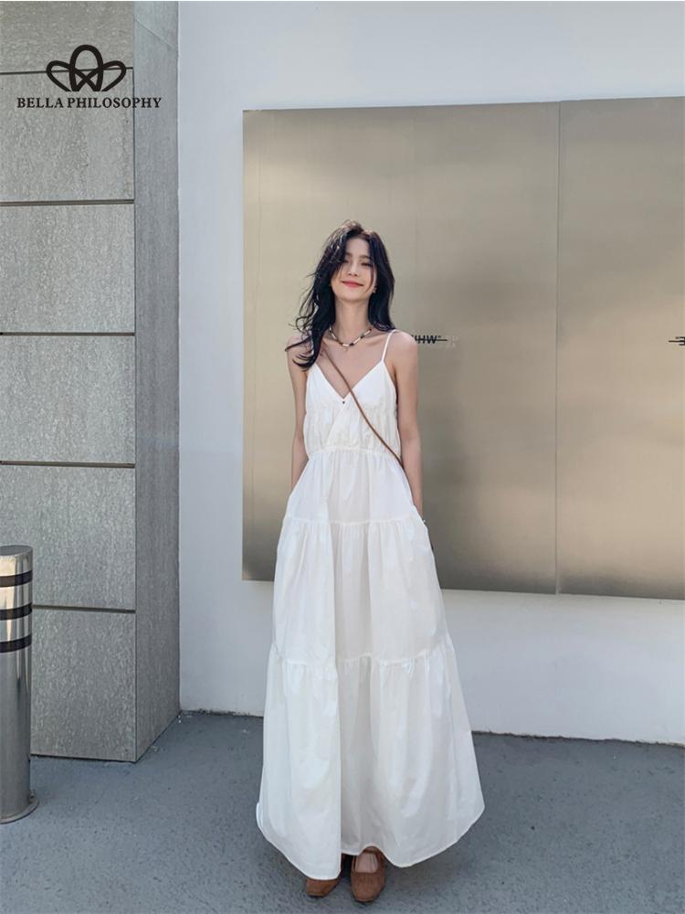 Новое летнее белое праздничное пляжное платье для путешествий, свободное утягивающее платье-комбинация в стиле ретро, повседневное элегантное платье XL белый