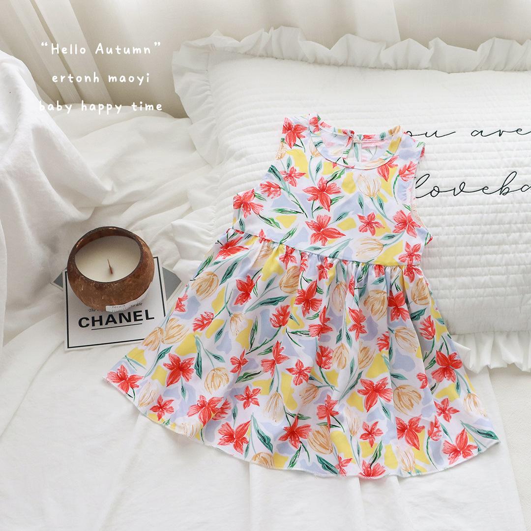 Новое летнее платье без рукавов с цветочным принтом для девочек ясельного возраста, милое дышащее свободное покрой легкое повседневное платье 90