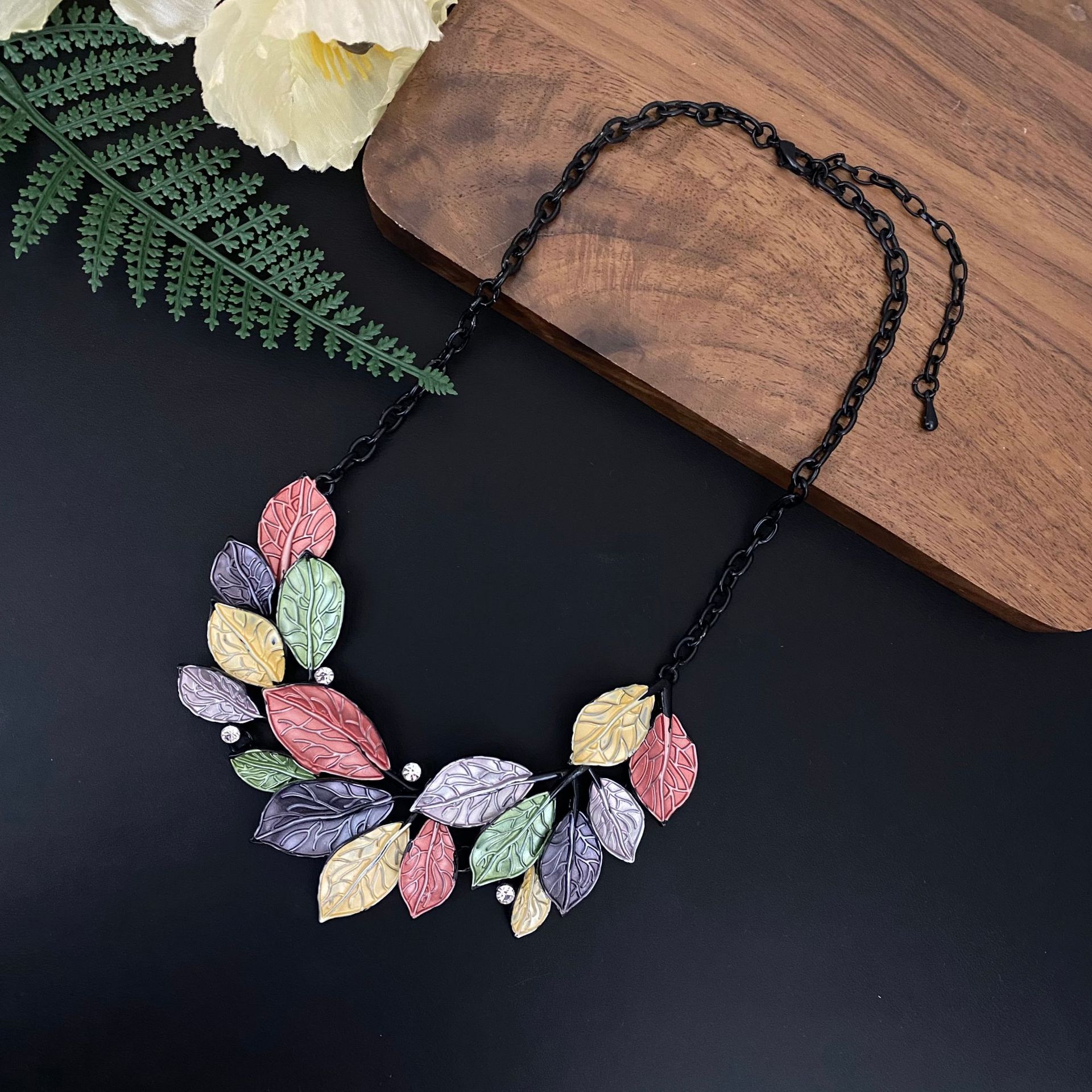 Новое ожерелье из сплава с цветными листьями, модная женская шейная цепочка с цветной масляной росписью