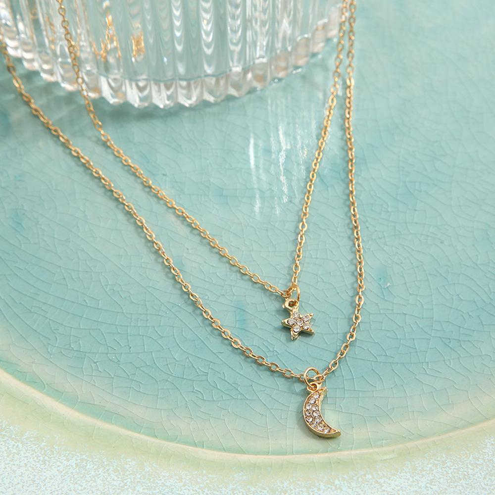 Новое ожерелье с подвеской в виде полной бриллиантовой луны и пятиконечной звезды, креативная многослойная цепочка на ключицу в стиле ретро, женская золотой