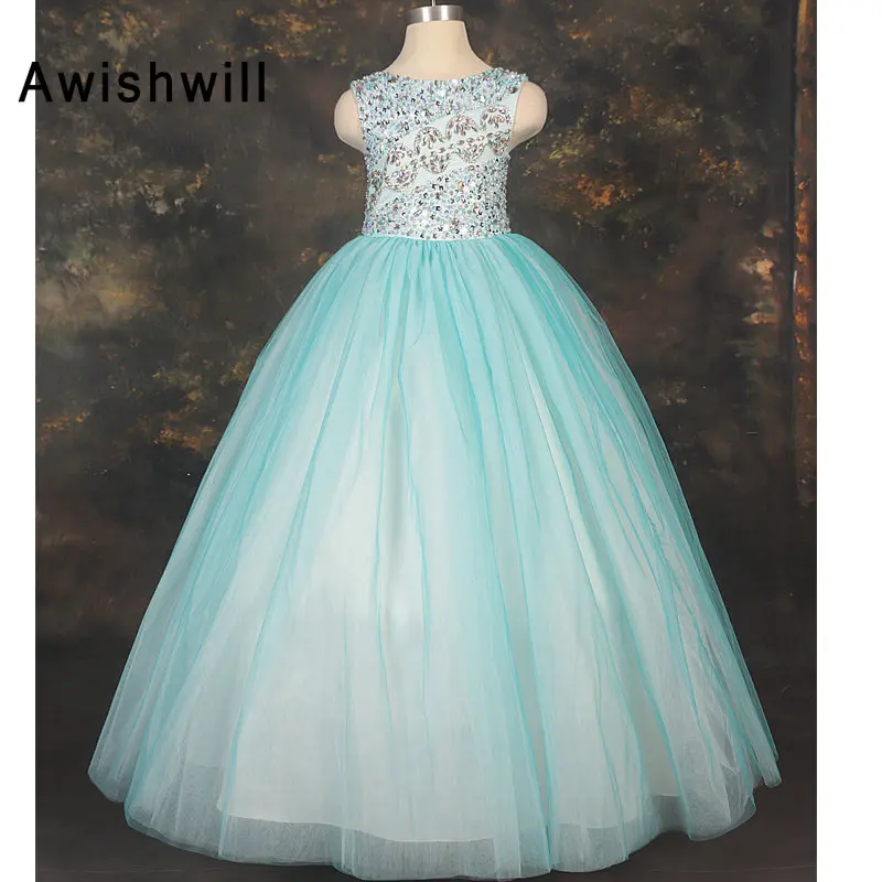 Новое поступление, детское платье до пола, платье для свадьбы, вечеринки, конкурса, бисером, Тюлевое длинное платье без рукавов с цветочным п...