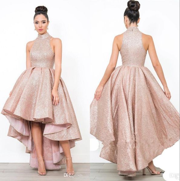 2019 arabic high neck sequin evening dresses ruched high low a line formal prom dresses party gowns bc2287, Black;red