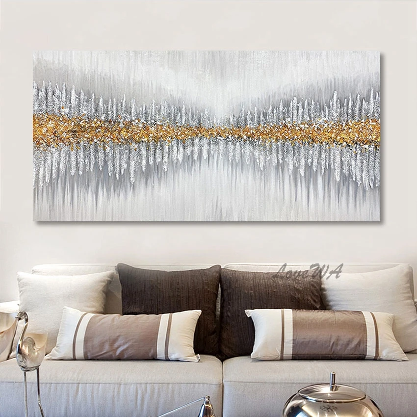 Новое поступление, светло-серая современная абстрактная картина маслом, Настенная картина для ресторана, домашнее украшение ручной работы,...