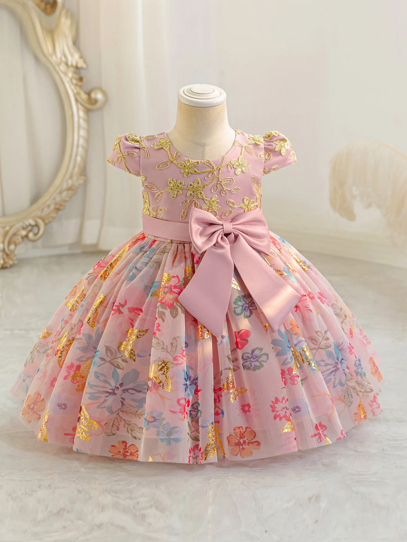 Новое праздничное платье принцессы для маленьких девочек, платья на день рождения с цветочным узором для девочек, детская одежда с принтом бабочки, От 6 месяцев до 4 лет