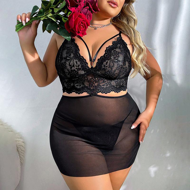 Новое сексуальное нижнее белье с V-образным вырезом, черное кружево, ночная рубашка большого размера, стринги 4XL