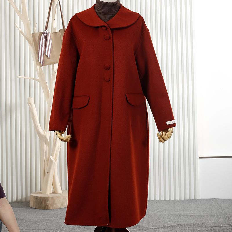 Новое шерстяное пальто двустороннее шерстяное длинное простое атмосферное шерстяное пальто женственность для поездок на работу шерстяное пальто M красный