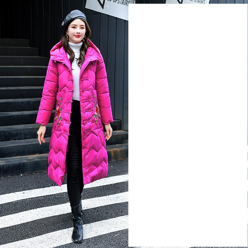 Новое этническое вышитое хлопковое пальто большого размера - Зимний китайский ретро-стиль XL розовый