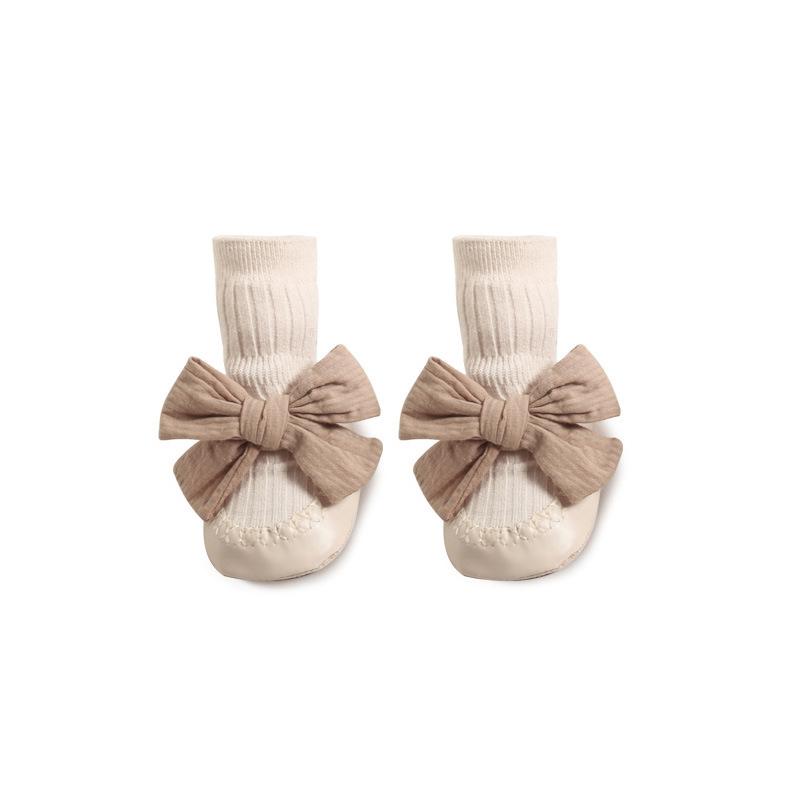 Новорожденные детские носки с кожаной подошвой против скольжения в корейском стиле с большим бантом для ходячего малыша Нескользящая обувь Носки S for 0-6m