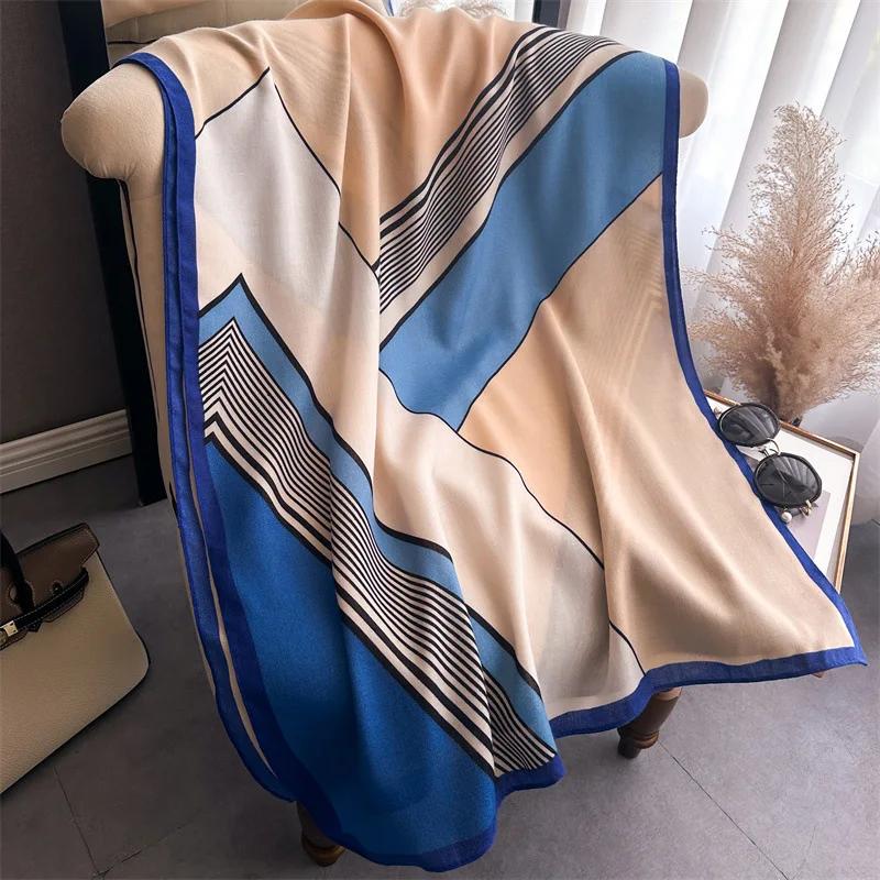 Новые Роскошные Шарфы Классический Британский Шелковый Шарф Женский Хлопково-Льняной Шаль для Защиты от Солнца Головной Платок Шаль Модные Обмотки Фуляр 178X66cm