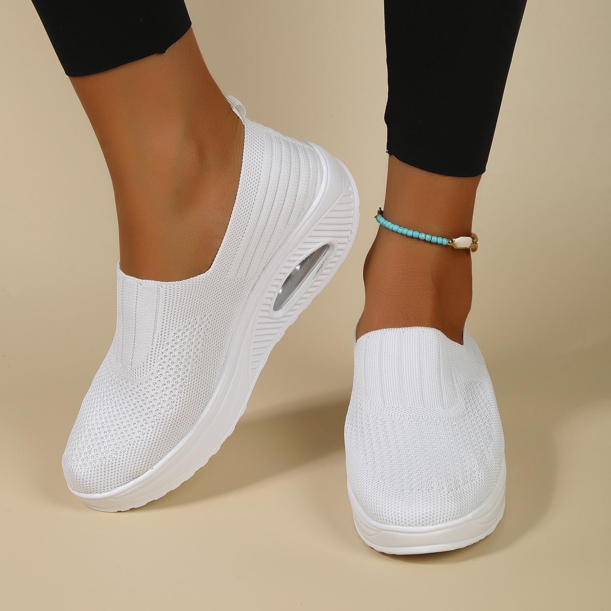 Новые большие размеры, дышащие и легкие женские туфли на воздушной подушке, спортивная и прогулочная обувь на высокой платформе, летающие плетеные туфли-качалки 36 белый
