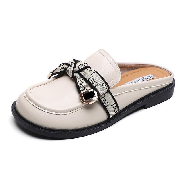 Новые весенние женские уличные тапочки, черные туфли-мулы в британском стиле, модные повседневные лоферы с бантом, обувь Muller для вечеринок и работы 35 слоновая кость