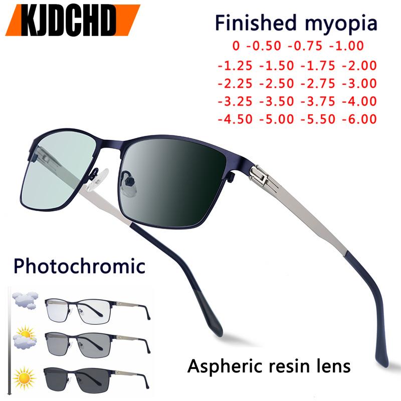 Новые готовые солнцезащитные фотохромные очки для близорукости, модные серые линзы-хамелеоны, металлические ножки, солнцезащитные очки со степенью защиты -1 -1,5 -2,0 -2,5 -3