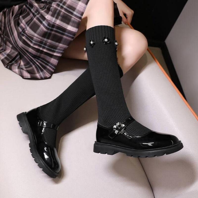 Новые детские одинарные туфли из лакированной кожи на толстой подошве, нескользящие туфли для детей среднего и старшего возраста, кожаные туфли для маленьких девочек с пряжкой, низкие, маленькие ле 39 (inner length 24.5cm)
