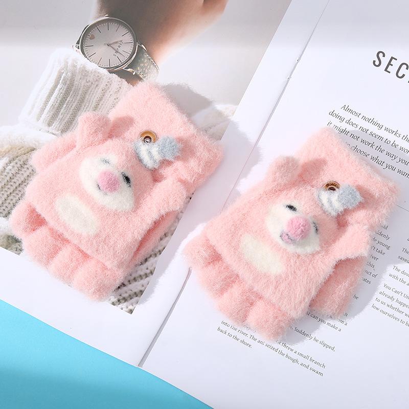 Новые детские теплые перчатки с рисунком енота, зимняя защита от холода, утолщенные, для маленькой девочки, с откидной крышкой на полпальца, на пять пальцев Recommended 3-8 years old