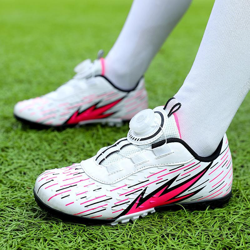 Новые детские футбольные бутсы весна-лето для мальчиков с шипами TF, подростковые, для девочек, учеников начальной школы, с вращающимися кнопками, для тренировок на траве 38
