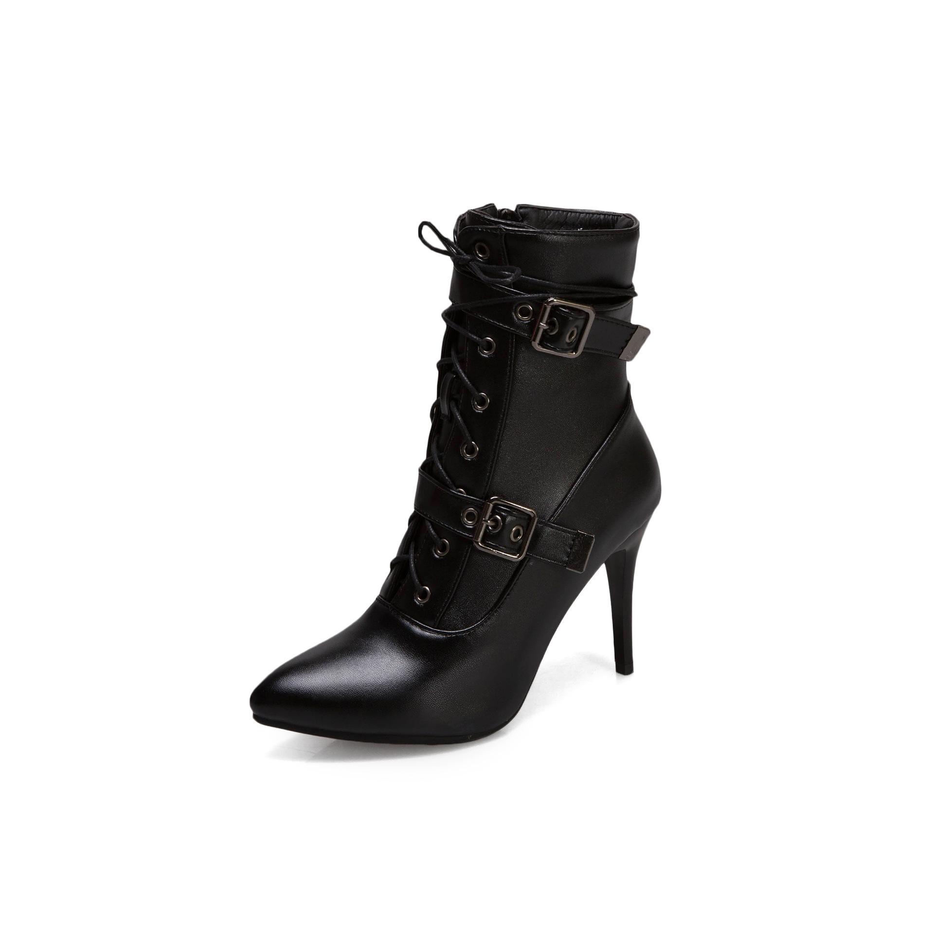 Новые женские ботильоны на тонком каблуке с острым носком на шнуровке женские ботильоны ремень пряжка осень зима сексуальные женские туфли на высоком каблуке большого размера 43