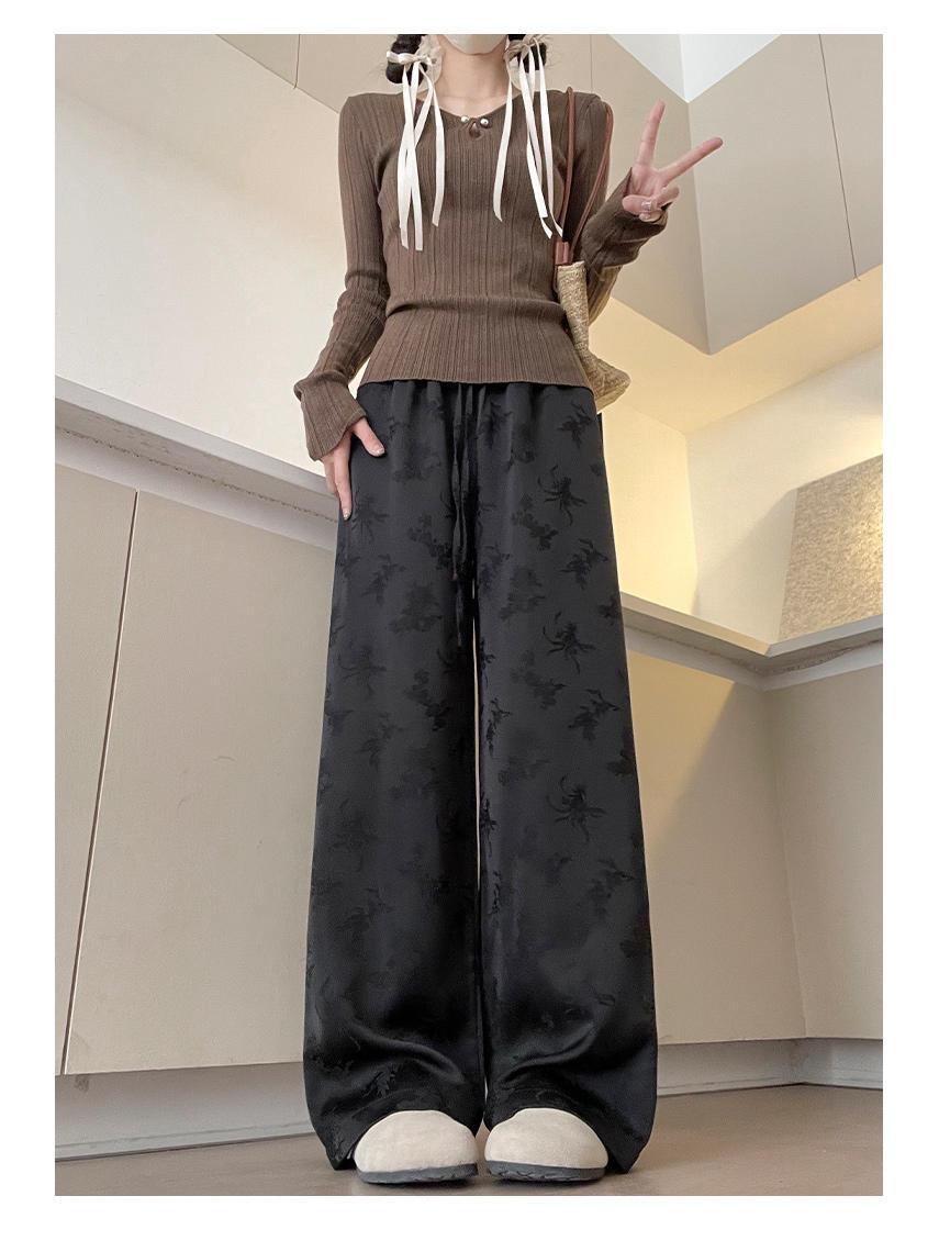 Новые женские жаккардовые атласные брюки широкого кроя в китайском стиле - Весенняя коллекция L чёрный