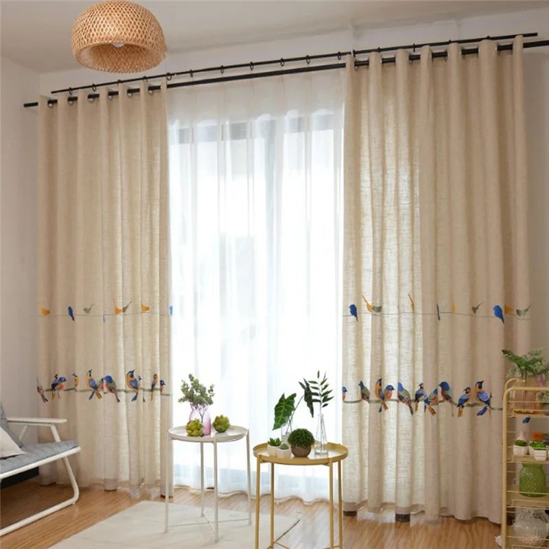 Новые занавески с тюлем, ткань с вышивкой в виде птиц для гостиной, льняные занавески, однотонная белая вуаль, тюль для спальни, столовой