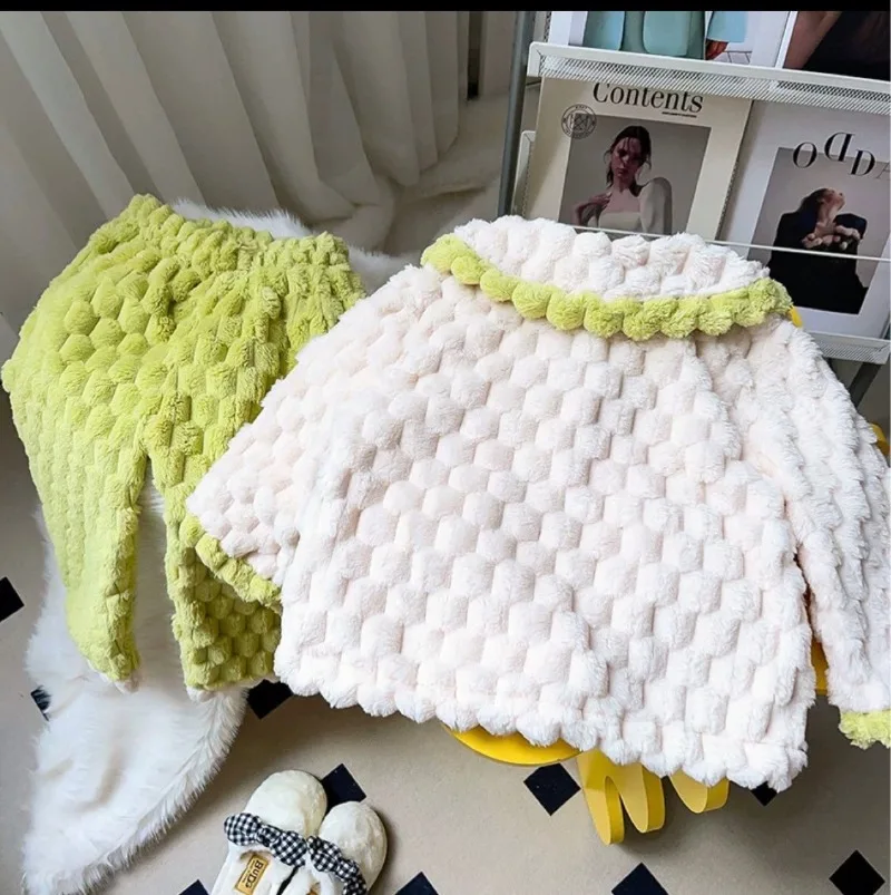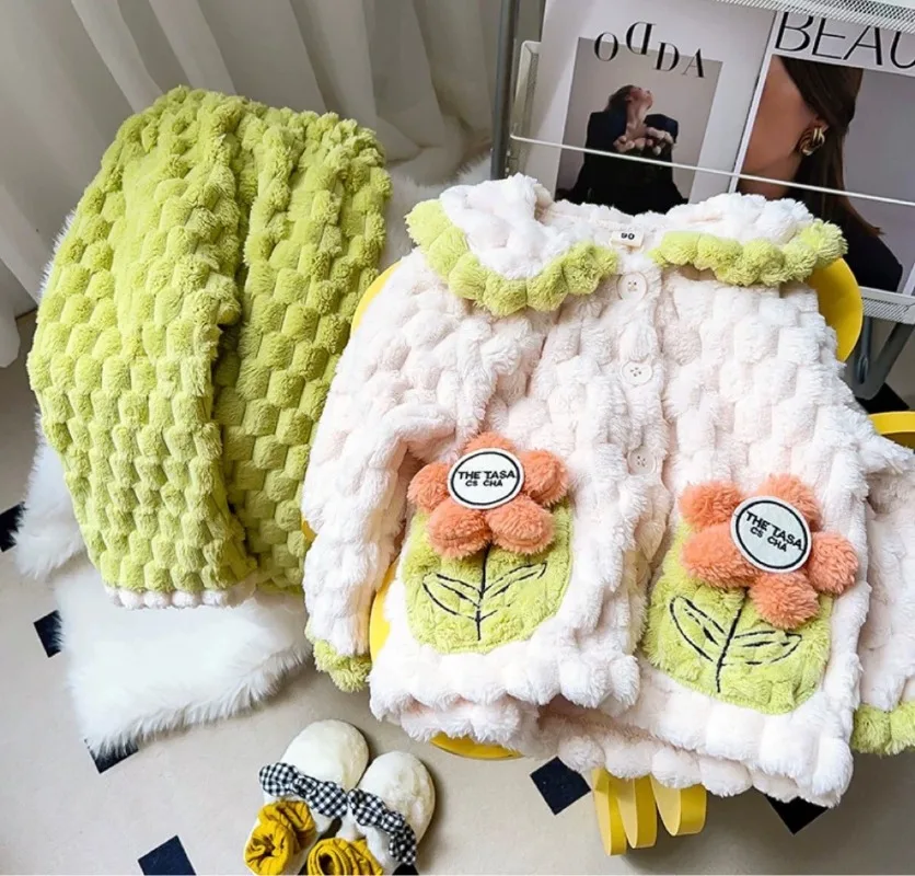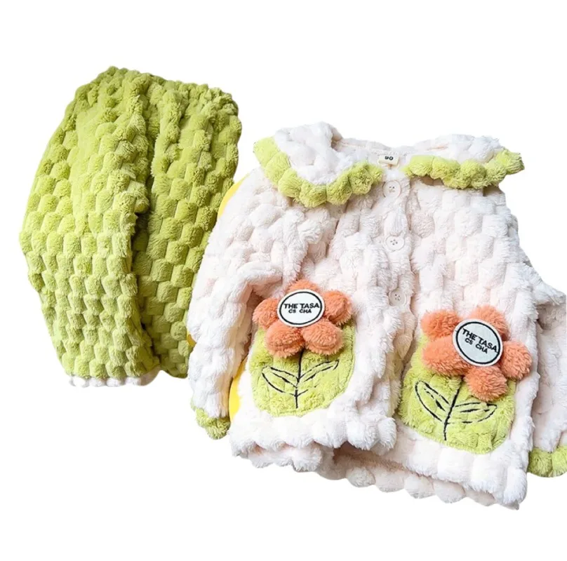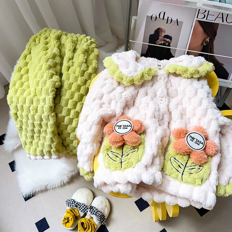 Новые зимние комплекты из двух предметов для девочек, плюшевые пижамы, фланелевые теплые мягкие цветочные милые модные домашние пижамы