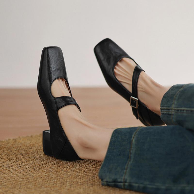 Новые летние туфли-лодочки из маленькой кожи, женские, однотонные, с квадратным носком, для носки в любое время года, больших и маленьких размеров, женская обувь, повседневная мода, одинарные туфли 42 (customized non-return and exchange) чёрный