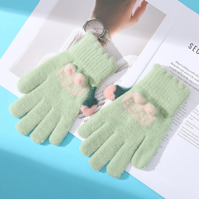 Новые милые перчатки с сенсорным экраном на пять пальцев для женщин на осень и зиму, вязаные, утолщенные, бархатные, сохраняющие тепло и пальцы при езде для защиты от холода average size