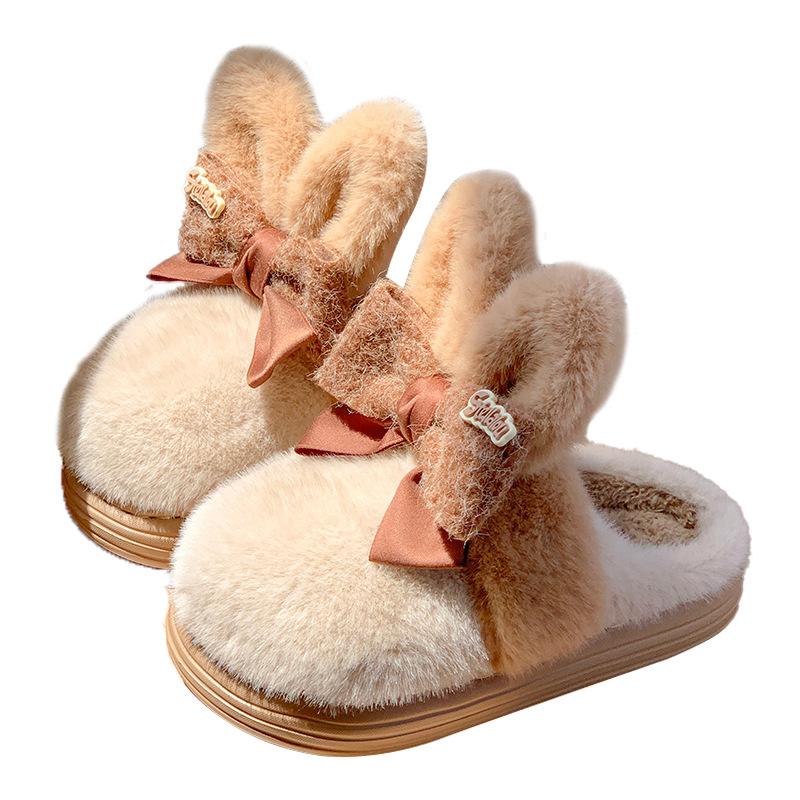 Новые милые тапочки-кролики, женская домашняя обувь, розовые тапочки с ушками кролика, забавные сабо, пушистые тапочки с бантом, тапочки для девочек-студенток 36-37 хаки
