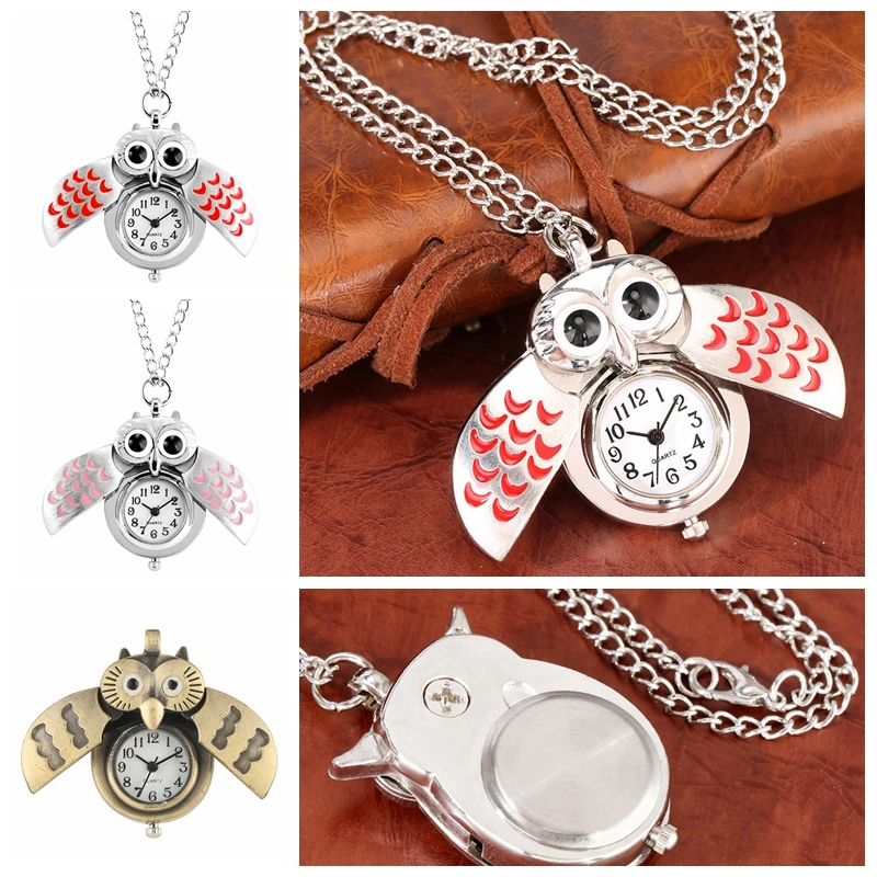 Новые модные карманные часы из сплава в стиле ретро, маленькие часы в форме милой Совы с подвеской и длинной цепочкой, подарок на день рожден...
