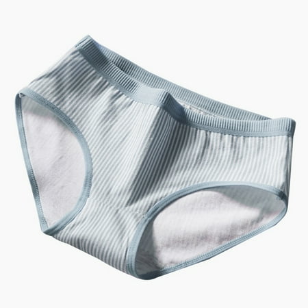 Women s Mid-Rise Hipster Panties New Striped Girl Cute Japanese Style Large Sizes Stretch Cotton Lingerie Soft Underwear 4pcs/Pack L-2XL Gray Blue