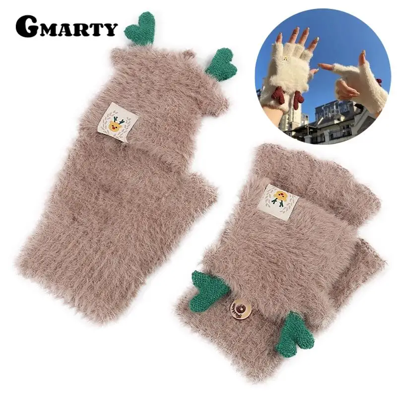 Новые модные перчатки осень-зима теплые милые Мультяшные олени оленьи пальцы женские взрослые варежки Мягкие плюшевые перчатки
