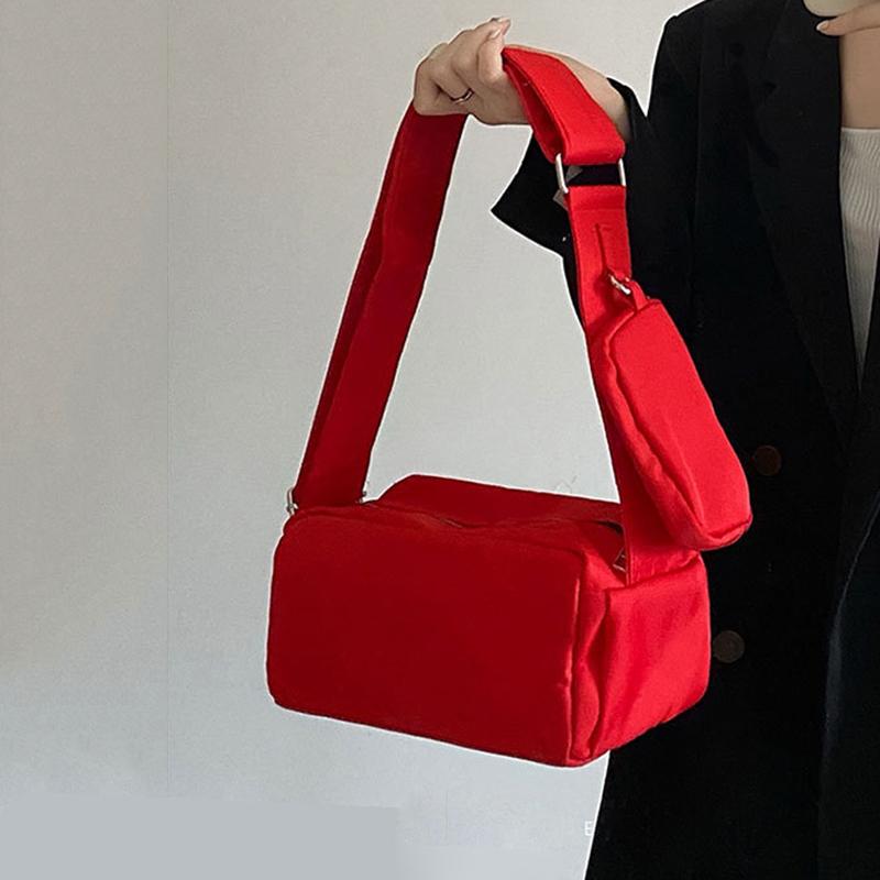 Новые модные сумки через плечо, красная подмышечная сумка, женская маленькая квадратная сумка, мягкие нейлоновые сумки для отдыха, универсальные трендовые сумки через плечо 24x11x12cm чёрный