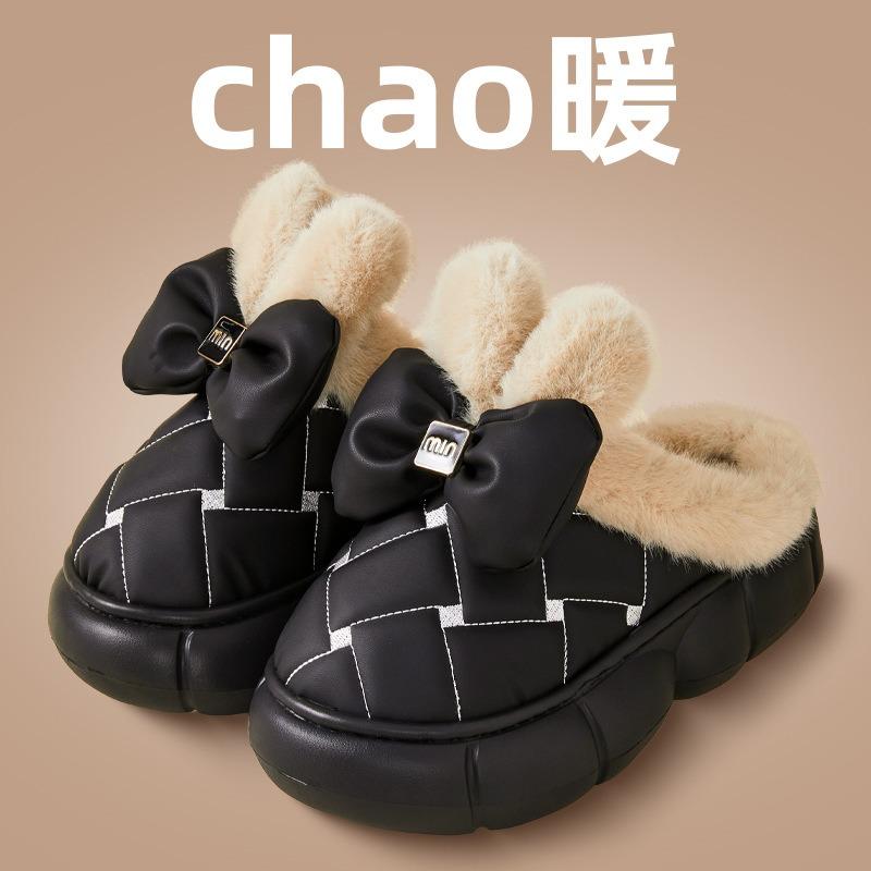 Новые осенне-зимние милые плюшевые нескользящие хлопковые тапочки с мультяшным принтом, утолщенные водонепроницаемые домашние тапочки на каждый день для дома 40-41 чёрный