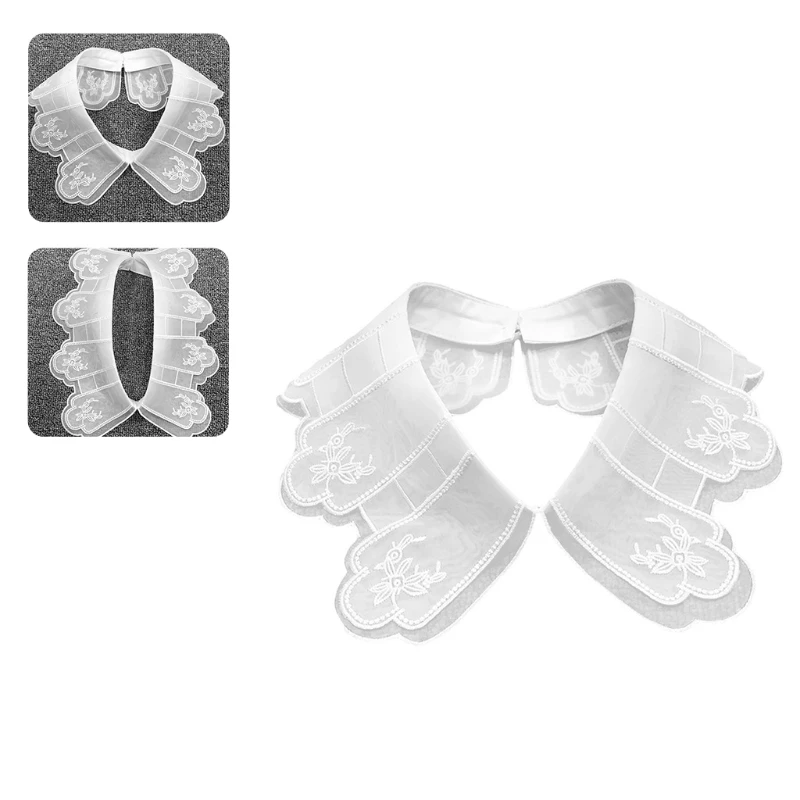 Women Embroidery Floral Chiffon Fake Collar Shawl Elegant White Necklace Wrap Button Decorative Mini Cape Half Shirt