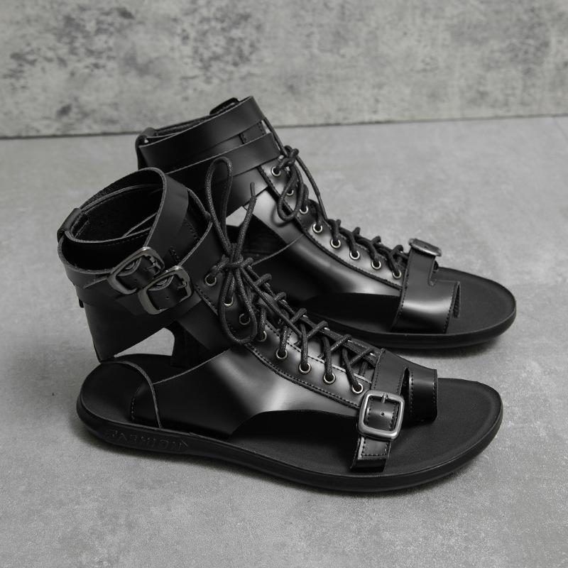 Новые сандалии большого размера модные летние ремешки в римском стиле персонализированная мягкая подошва кожаная поверхность мужские и женские пляжные сандалии 38 чёрный