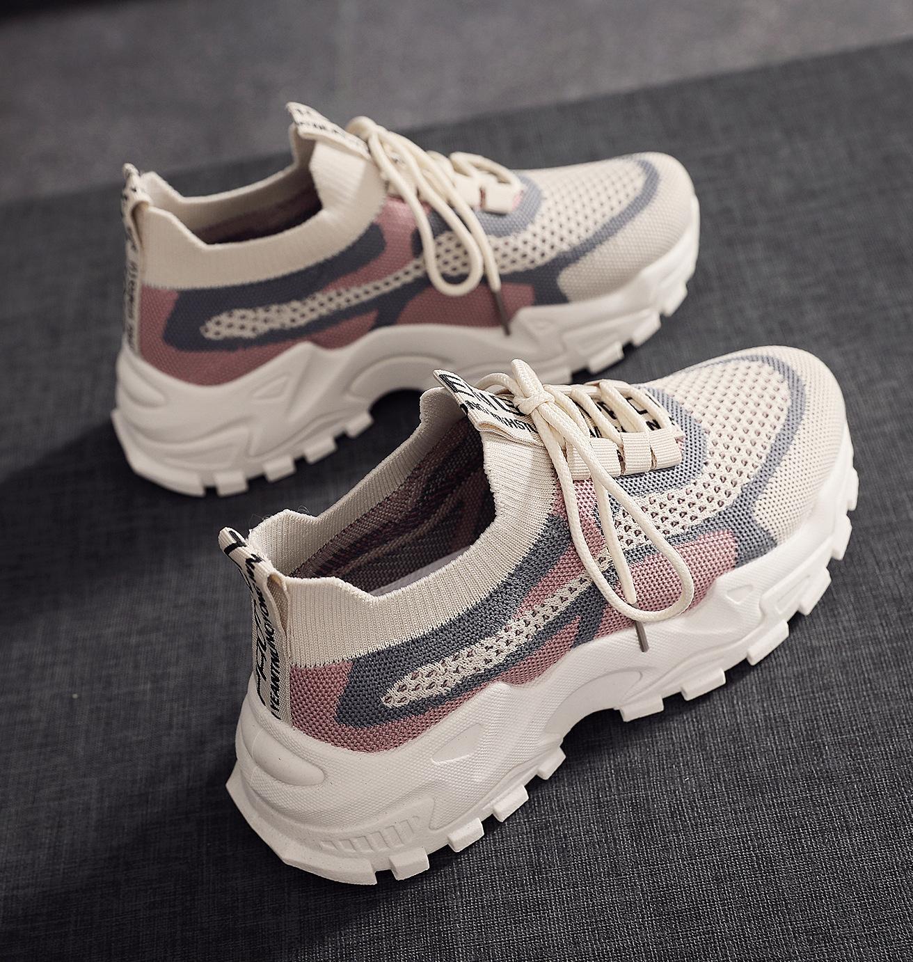 Новые спортивные женские туфли оптом на шнуровке модные дышащие женские туфли с плетением из мушек на толстой подошве легкие туфли для папы модные трендовые туфли 36 чёрный