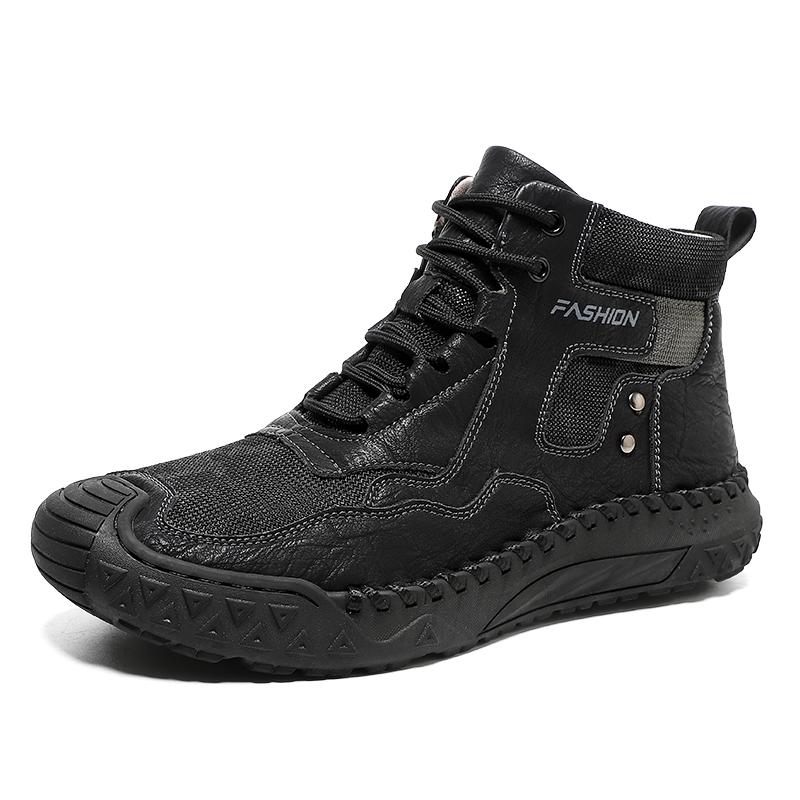 Новые туфли из натуральной кожи Мужские Большой размер 48Роскошные Толстые Ботинки Для улицы Высокие ботинки Повседневная Водонепроницаемая обувь Новая Мужская обувь на шнуровке 38 чёрный