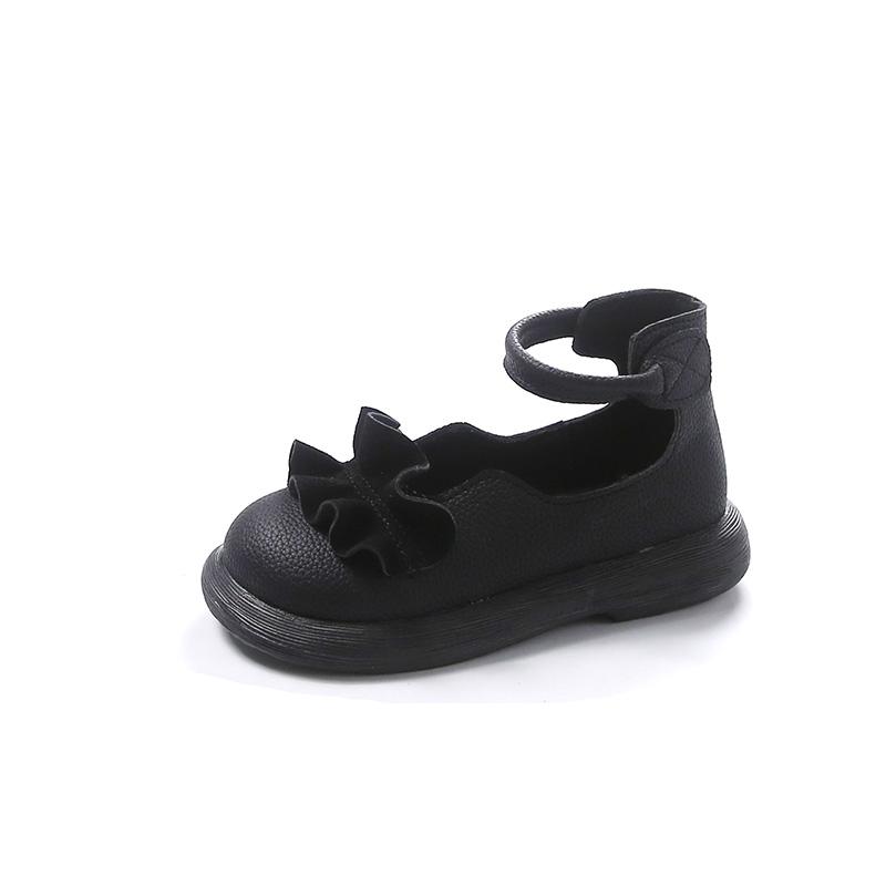 Новые туфли принцессы из кожи для девочек, простой стиль, детские плиссированные туфли, модные повседневные детские универсальные туфли на плоской подошве с ремешком на щиколотке, мягкие 26 чёрный