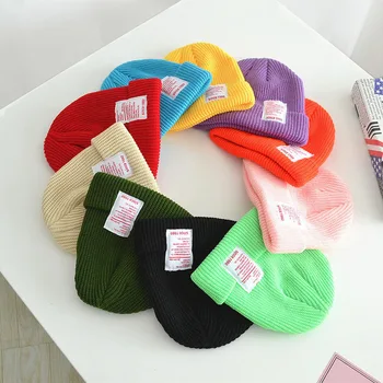 1Pcs Baby Cotton Hats Candy Color Kids Beanie Hat Autumn Winter Children Keep Warm Caps 2-8Yrs Boys Girls Soft Knitted Crochet H