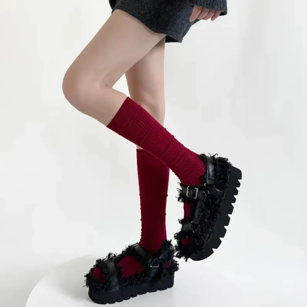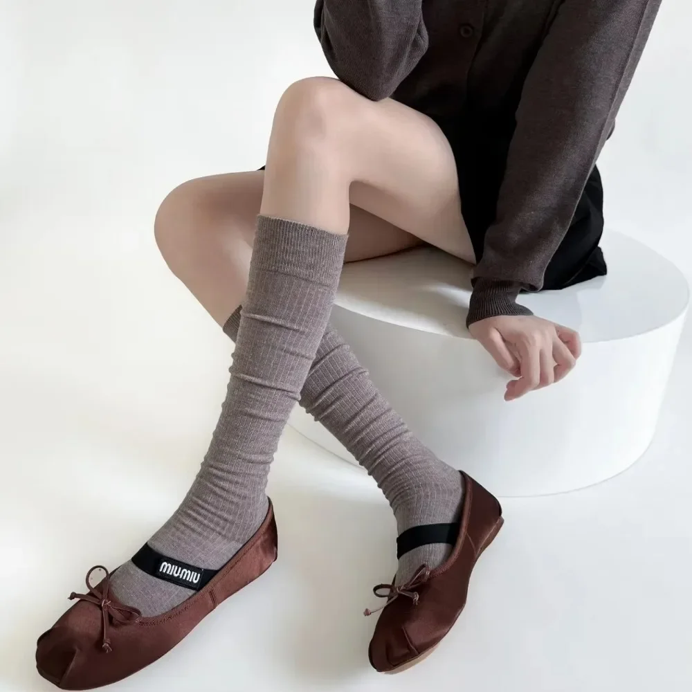 Новые хлопковые вязаные женские чулки, простые гольфы, школьные однотонные черные, белые, серые длинные носки для девочек, осенне-зимние чулки