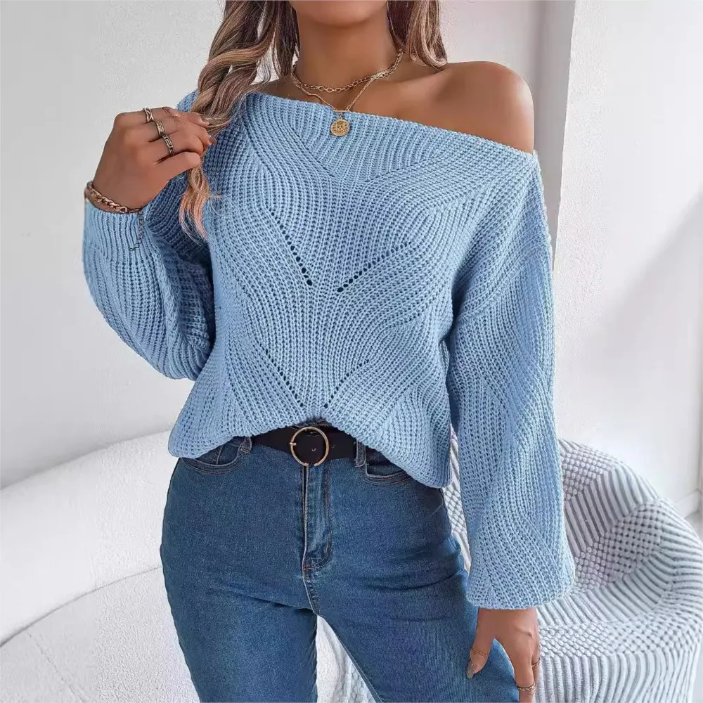Осень-зима 2022, новые модные полые вязаные женские топы с длинными рукавами, повседневные свободные сексуальные женские универсальные свитера с открытыми плечами