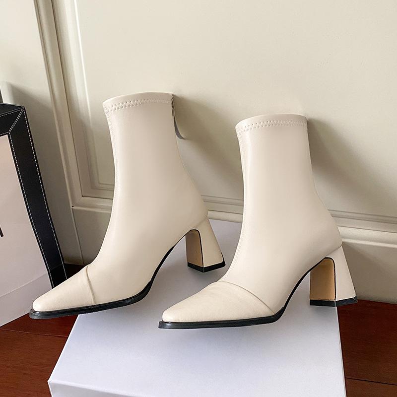 Новые черные тонкие ботильоны на высоком каблуке женские на толстом каблуке эластичные ботильоны осень и зима мягкая кожа ретро квадратный носок короткие ботильоны 39