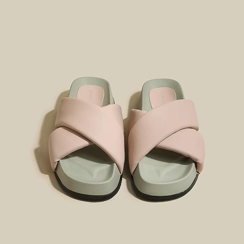 Новые шлепанцы на платформе с перекрестными ремешками, женские летние, с открытым носком, прохладные шлепанцы, нескользящая пляжная обувь 40 розовый