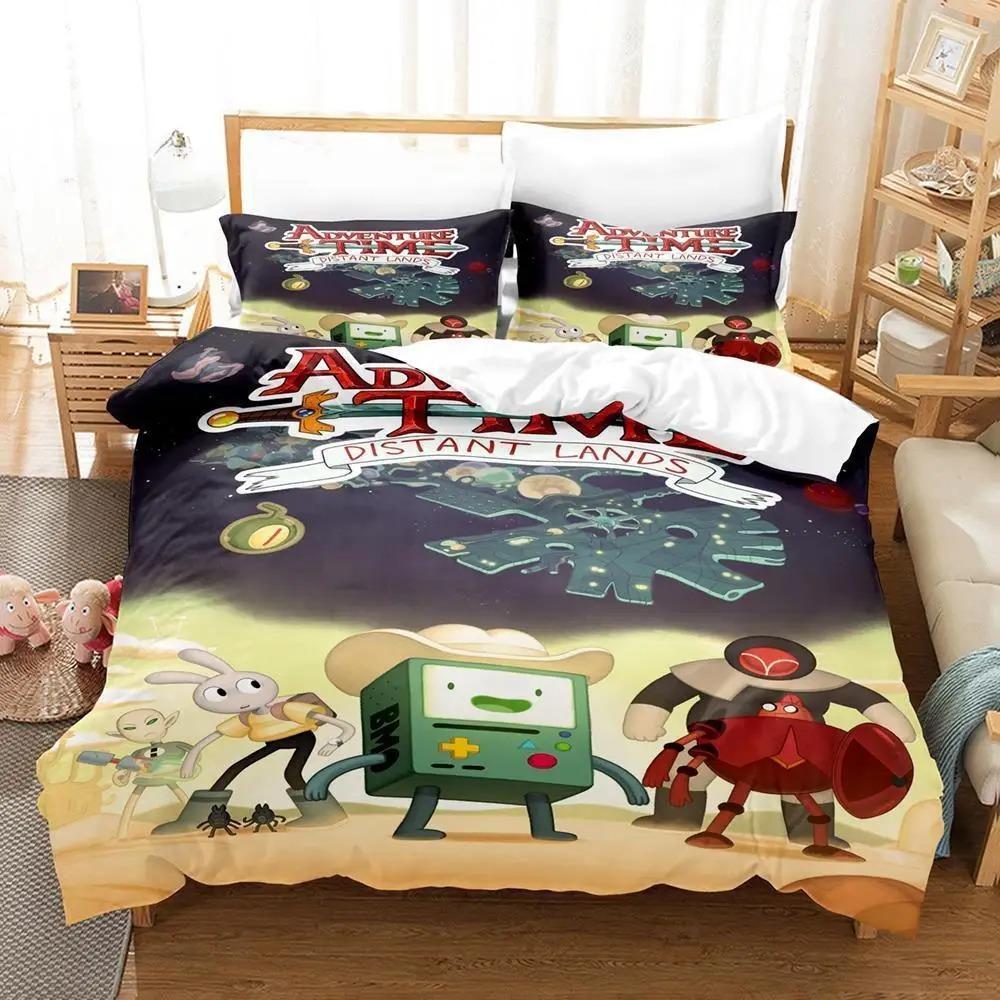 Новый Аниме Время Приключений Постельный Комплект Пододеяльник Одеяло Комплект Постельного Белья Пододеяльник Наволочка Король Королева Полуторный Размер Мальчик Девочка Взрослый EU single(135x200cm)
